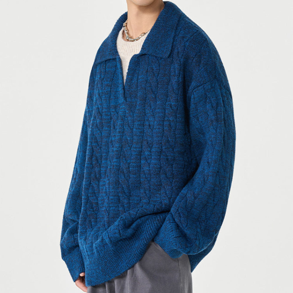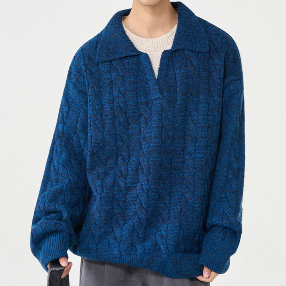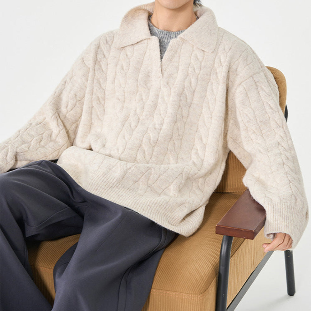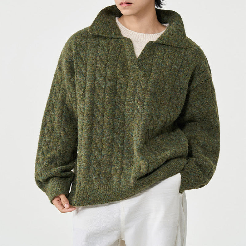 Wrap yourself in warm and comfort with this ultra-soft knit sweater, featuring a laid-back half-open collar. The relaxed fit adds effortless style to your everyday layering.